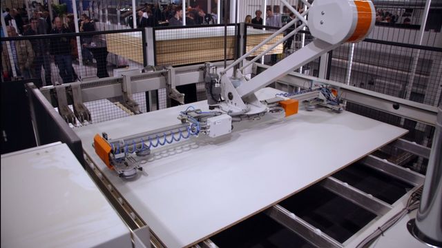 Durch ihre hohen Beschleunigungswerte und Vorschubgeschwindigkeiten arbeitet die horizontale Plattensäge TECTRA 6120 selbst große Mengen an Platten rationell ab. Komplett automatisierte und intelligente Abläufe bietet das Plattenlagersystem STORE-MASTER.